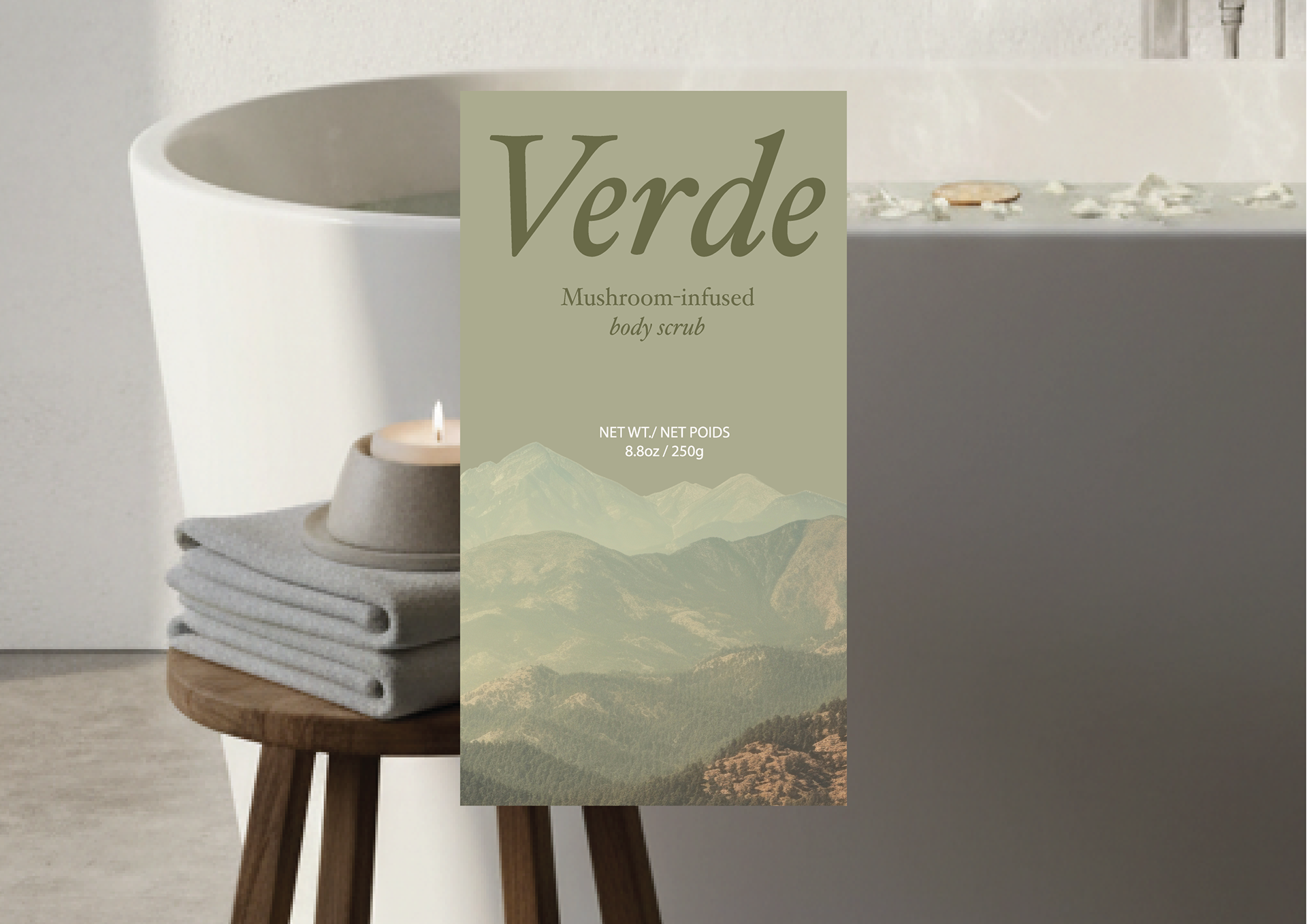 Verde is a conceptual premium body care brand centred around calm, everyday rituals. Inspired by nature and mushroom-infused formulations, the brand focuses on simplicity, tactility, and quiet luxury.